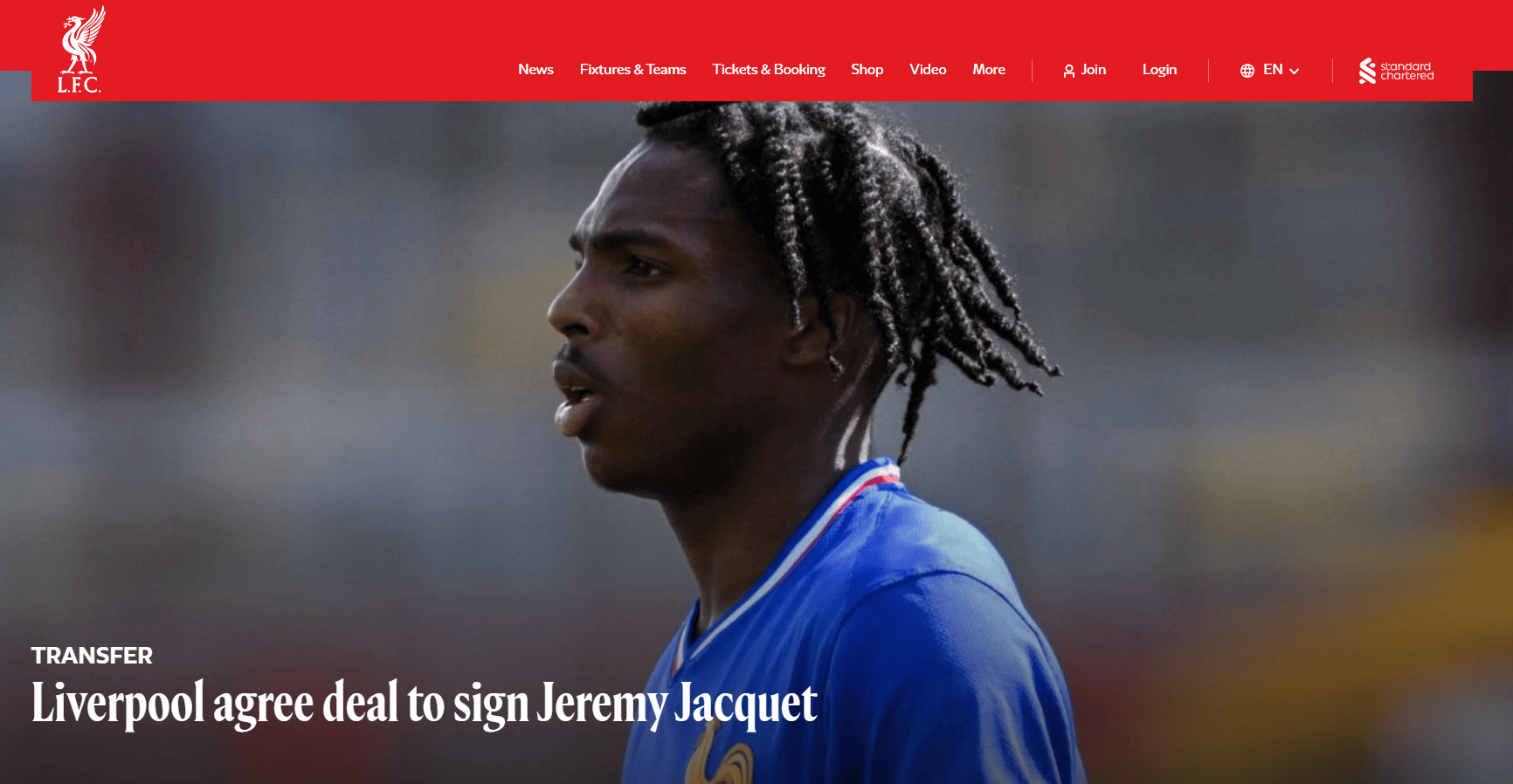 利物浦官方公告称:利物浦已与雷恩就杰里米-雅凯的转会达成协议。这名后卫将在2026-27赛季前加盟利物浦,不过还需等待工作许可及国际转会手续的完成。